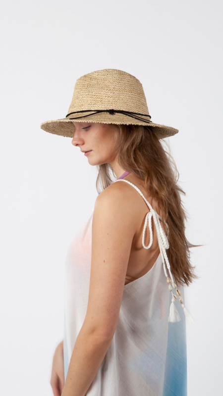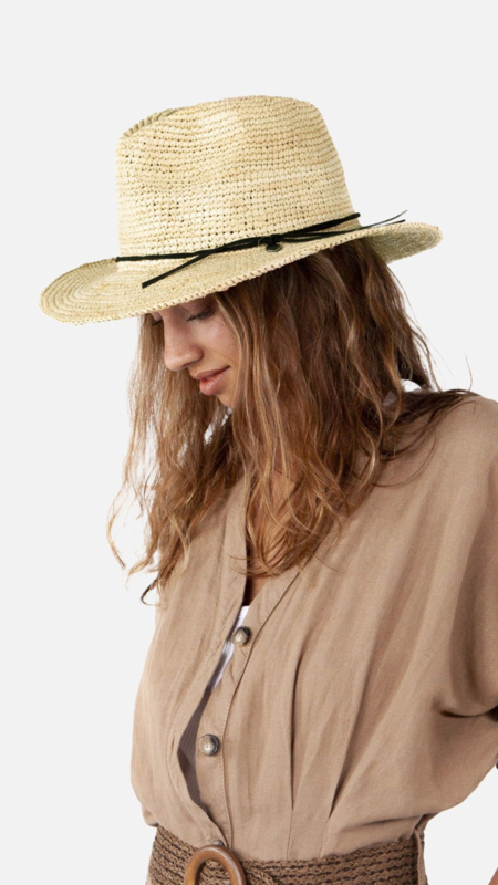 Artikelnummer: 8596307 8596207 OverzichtDe Celery Hat is een fedora hoed gemaakt van raffia met een verstelbare binnenband voor een breed pasbereik.
