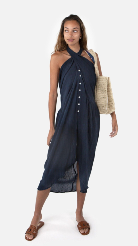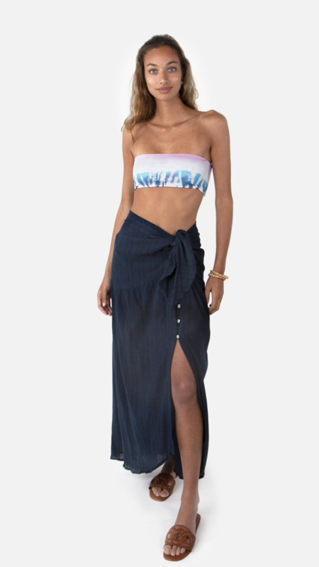 Artikelnummer: 6234003 OverzichtDe Arikis is gemaakt van 100% katoen en kan gedragen worden als maxi rok of jurk. Wordt gesloten door de stof vooraan om te vouwen, met daaronder knoopjes. Stof aan de voorkant is korter dan de stof aan de achterkant.