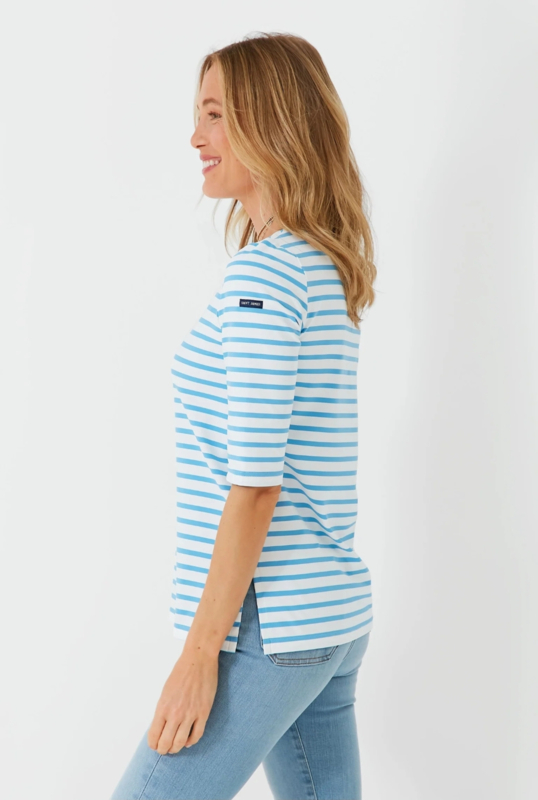 Ideaal voor een verblijf aan zee, deze marinière is gemaakt van UVYL, een anti-UV-materiaal. De perfecte mix van ons matrozen-DNA en een technisch stuk, de Phare-matrozentop is een matrozentop met boothals en 3/4-mouwen. Een essentieel stuk om mee te nemen voor je zomerwandelingen.