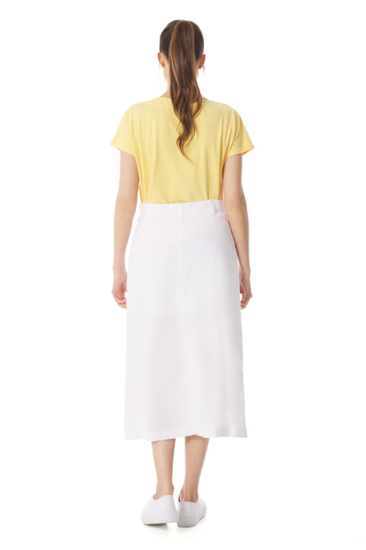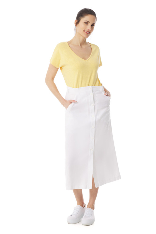 Val voor deze lange ramie rok! Uitgerust met grote zakken en knoopsluiting aan de voorkant, is dit shirt zowel praktisch als trendy. De eenvoud van deze lange rok met knopen combineert perfect met de strepen van een licht T-shirt. Extraatje: het materiaal van ramie en katoen is sterk en ademend, waardoor het kledingstuk een natuurlijke uitstraling krijgt.