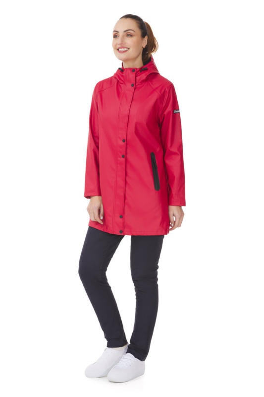 Dankzij de authentieke stijl en beschermende snit is deze regenjas met capuchon voor dames een onmisbaar kledingstuk voor een wandeling langs de zee! Kies voor deze ultrapraktische regenjas met meerdere zakken en verstelbare capuchon. Het gecoate katoenen canvas van deze regenjas beschermt je tegen buien, terwijl de jersey voering comfort en zachtheid biedt.